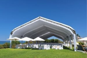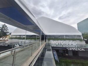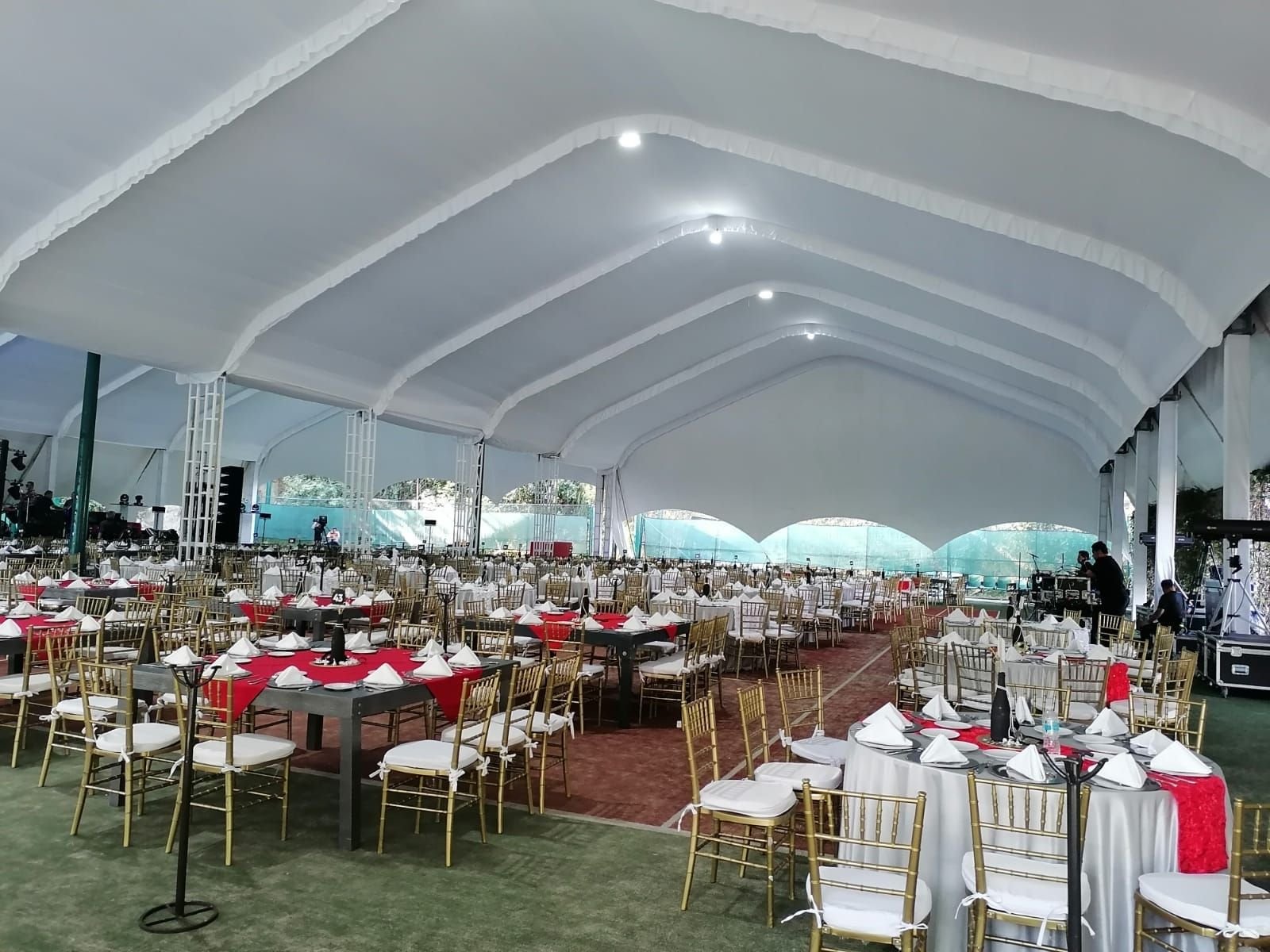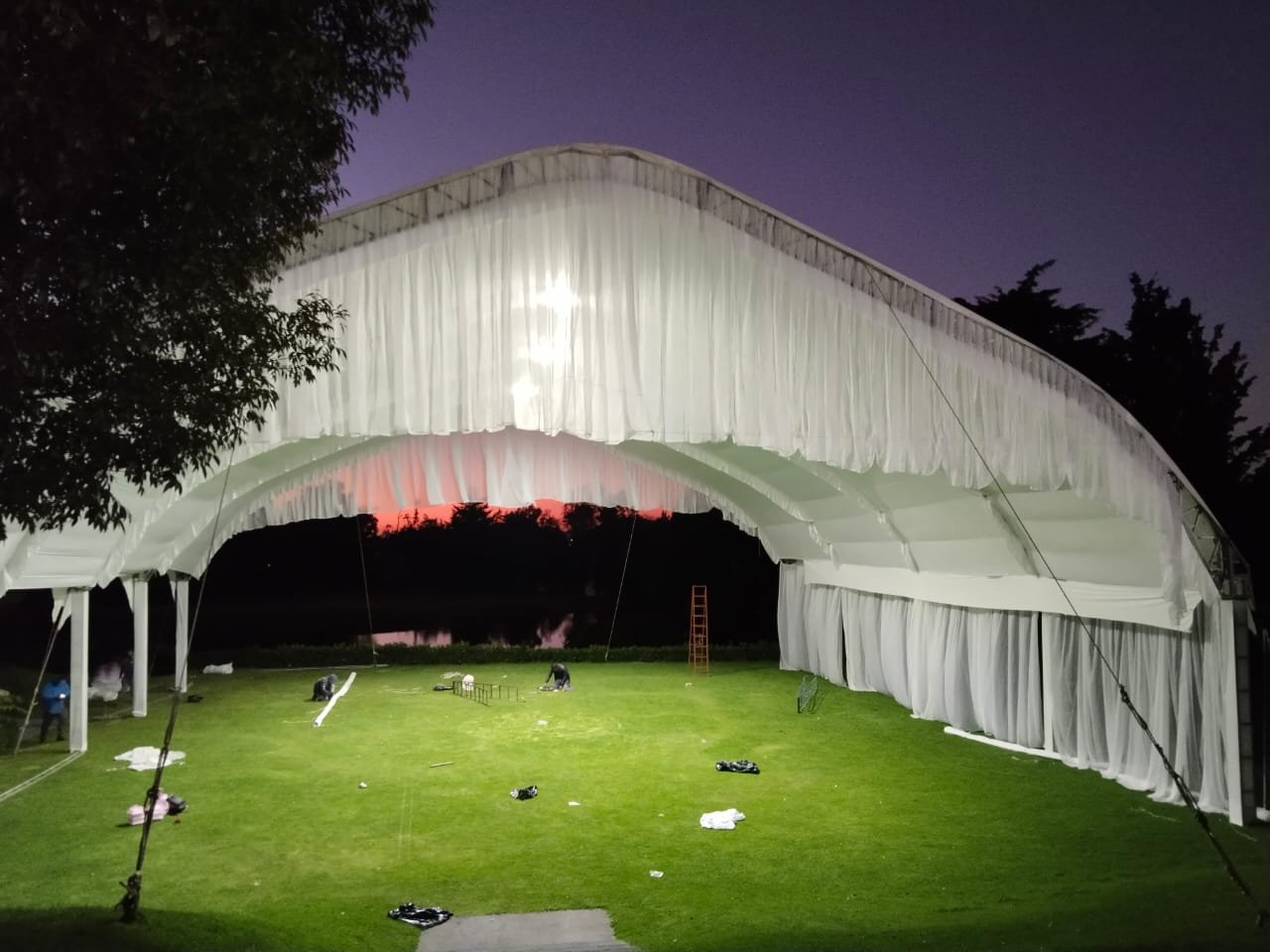 La estructura de acero que manejamos es modular, lo que permite que se adapte rápidamente a diferentes tamaños y eventos ¡Sin postes intermedios! Maximizando el espacio útil. Manejamos desde 10 metros de ancho, hasta 30m de ancho